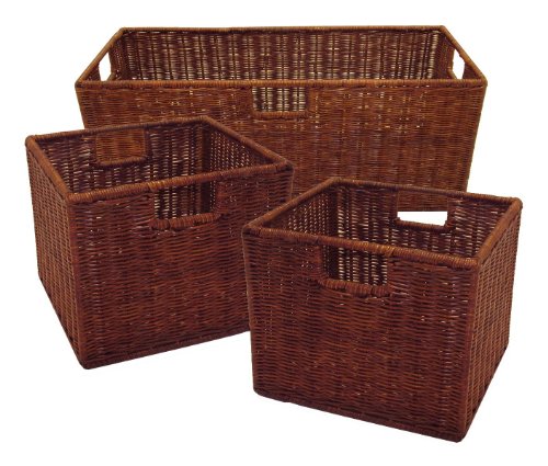 This set of three wicker baskets, one large and two small, is ideal for use with the Espresso Wide and Narrow Storage Shelves. Made from durable wicker, they are practical as well as elegant..../ Leo Set of 3 Wired Baskets, 1 Large and 2 Small / Storage Closet